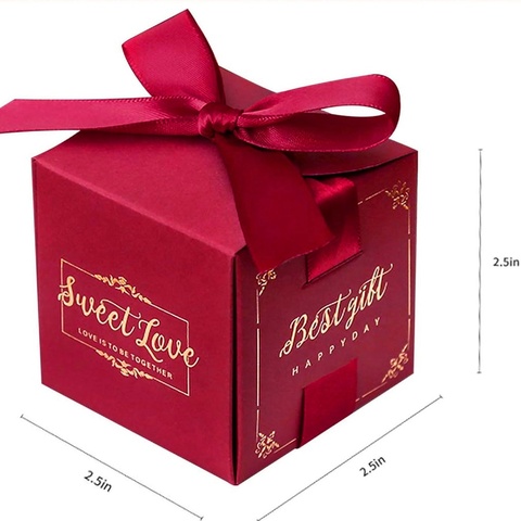 صندوق مطوي من الورق المقوى للاحتفالات صندوق هدايا حلوى الزفاف الأحمر مع رقائق معدنية ذهبية مختومة ساخنة للهدايا